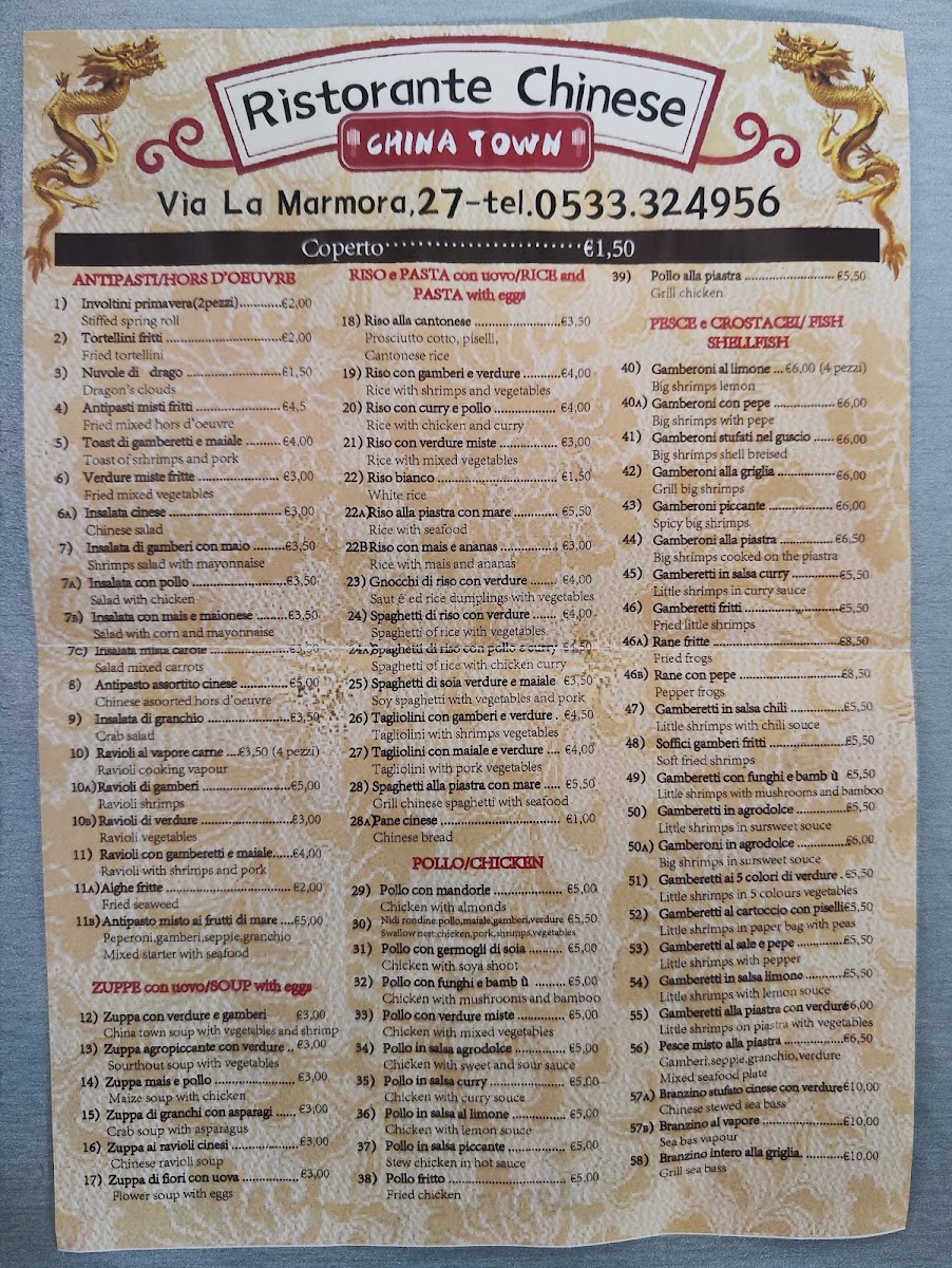 Welcome to China Town - 26, a hidden culinary gem located in Porto Garibaldi, Italy. This establishment is renowned for its extensive menu, which offers a delightful fusion of authentic Chinese flavors and regional Italian influences. From handmade ravioli that are simply spectacular to generous portions of traditional dishes, every bite promises to excite your palate.